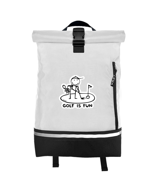 Original backpack ROLL-TOP SMALL with design 1057 GOLF IS FUN in color WHITE
