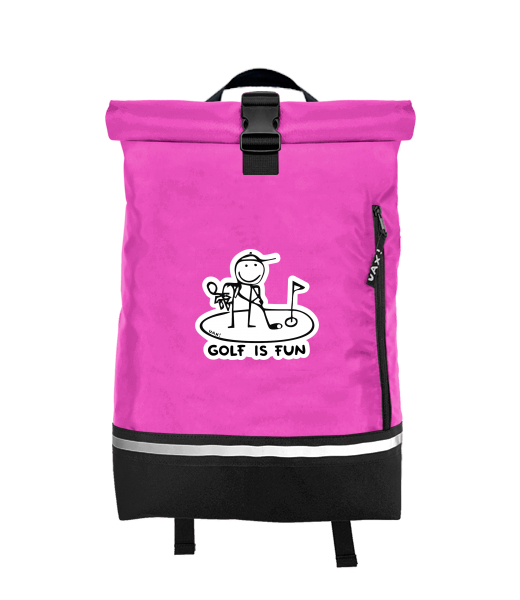 Original backpack ROLL-TOP SMALL with design 1057 GOLF IS FUN in color INDIAN LILA