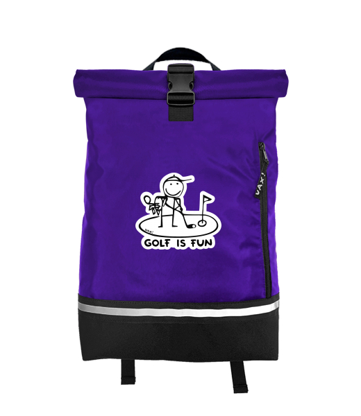 Original backpack ROLL-TOP SMALL with design 1057 GOLF IS FUN in color VIOLET