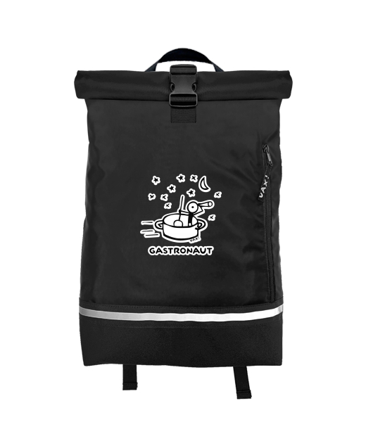 Original backpack ROLL-TOP SMALL with design 1058 GASTRONAUT in color BLACK