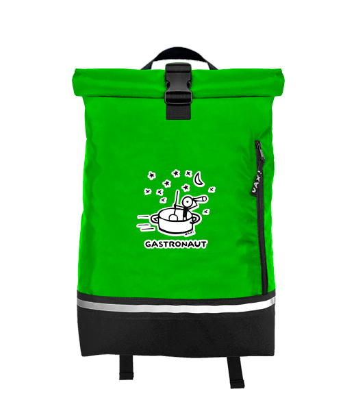 Original backpack ROLL-TOP SMALL with design 1058 GASTRONAUT in color BRIGHT GREEN