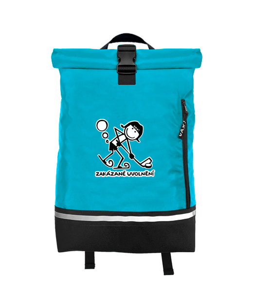 Original backpack ROLL-TOP SMALL with design 1059 ZAKÁZANÉ UVOLNĚNÍ in color BLUE ATOLL