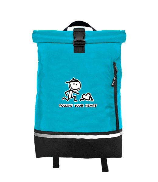 Original backpack ROLL-TOP SMALL with design 1063 FOLOW YOUR HEART in color BLUE ATOLL