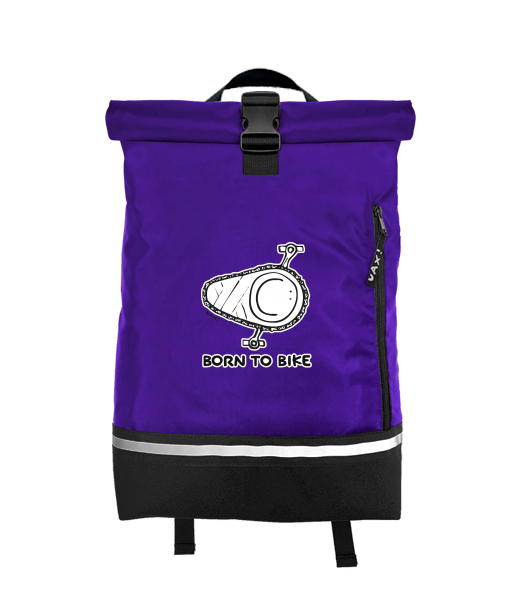 Original backpack ROLL-TOP SMALL with design 1074 BORN TO BIKE in color VIOLET