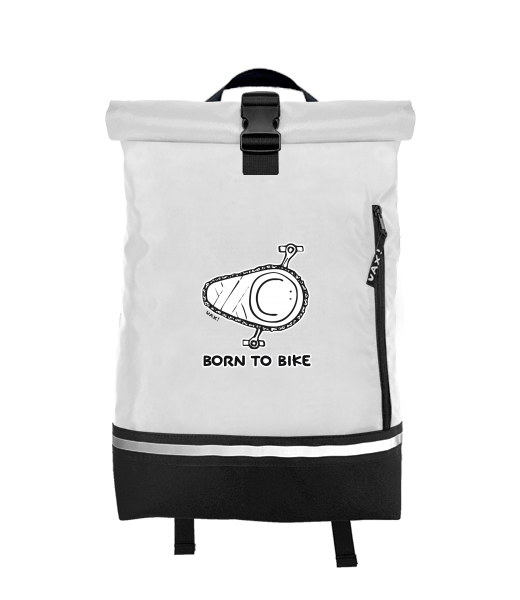 Original backpack ROLL-TOP SMALL with design 1074 BORN TO BIKE in color WHITE