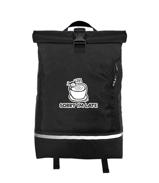 Original backpack ROLL-TOP SMALL with design 1087 SORRY IM LATE in color BLACK