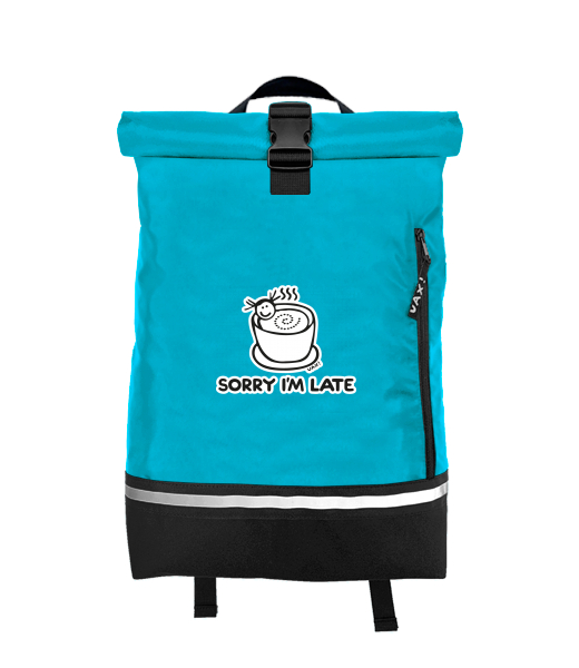 Original backpack ROLL-TOP SMALL with design 1087 SORRY IM LATE in color BLUE ATOLL