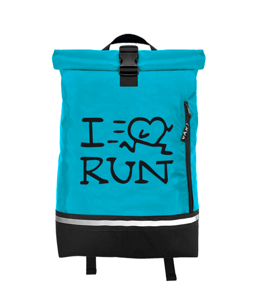 Original backpack ROLL-TOP SMALL with design 1088 I LOVE RUN in color BLUE ATOLL