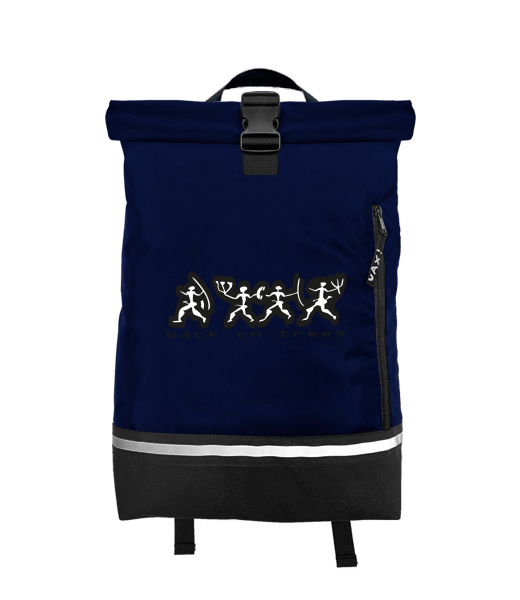 Original backpack ROLL-TOP SMALL with design 11 BACK ON TREES in color MIDNIGHT BLUE