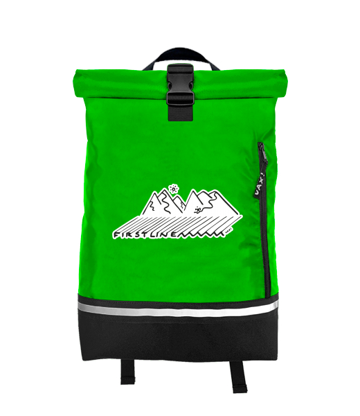 Original backpack ROLL-TOP SMALL with design 1181 FIRST LINE in color BRIGHT GREEN