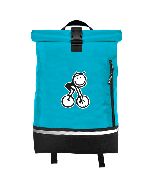 Original backpack ROLL-TOP SMALL with design 1202 BIKE MAN in color BLUE ATOLL