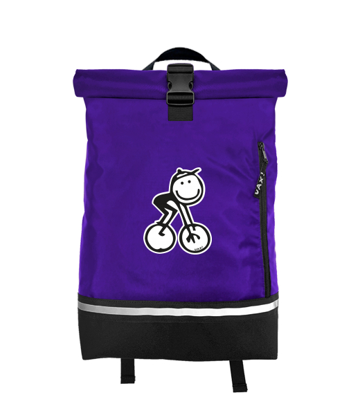 Original backpack ROLL-TOP SMALL with design 1202 BIKE MAN in color VIOLET