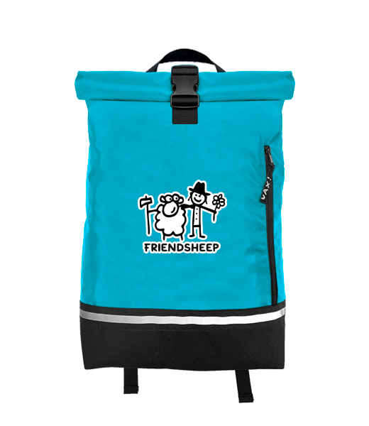 Original backpack ROLL-TOP SMALL with design 1205 FRIENDSHEEP in color BLUE ATOLL