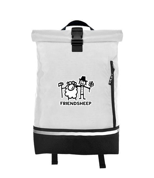 Original backpack ROLL-TOP SMALL with design 1205 FRIENDSHEEP in color WHITE