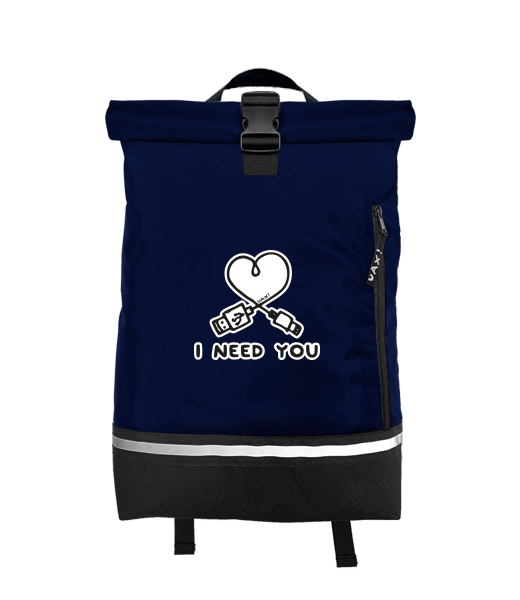 Original backpack ROLL-TOP SMALL with design 1206 I NEED YOU 2 in color MIDNIGHT BLUE
