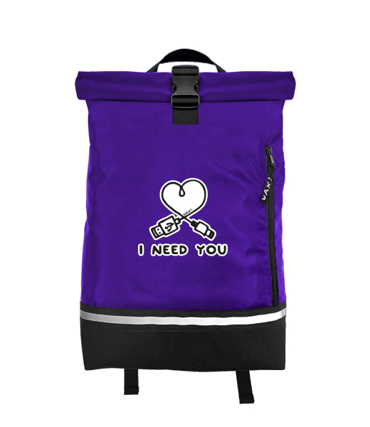 Original backpack ROLL-TOP SMALL with design 1206 I NEED YOU 2 in color VIOLET