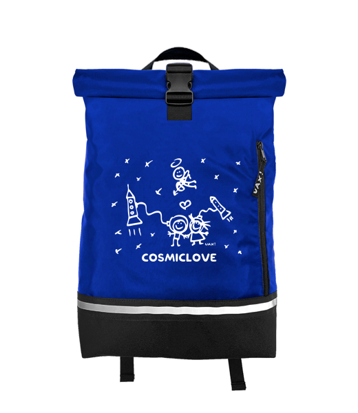 Original backpack ROLL-TOP SMALL with design 1207 COSMICLOVE in color CLASSIC BLUE