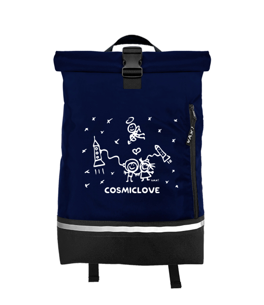 Original backpack ROLL-TOP SMALL with design 1207 COSMICLOVE in color MIDNIGHT BLUE