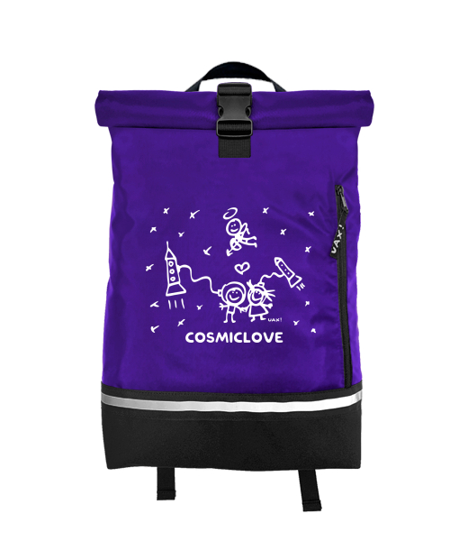 Original backpack ROLL-TOP SMALL with design 1207 COSMICLOVE in color VIOLET
