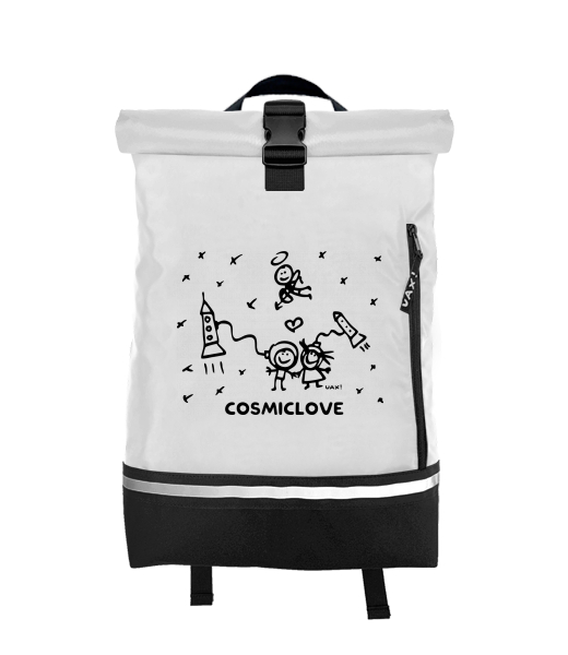Original backpack ROLL-TOP SMALL with design 1207 COSMICLOVE in color WHITE