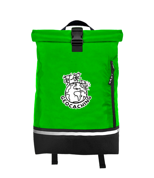 Original backpack ROLL-TOP SMALL with design 1215 GEOCACHING in color BRIGHT GREEN