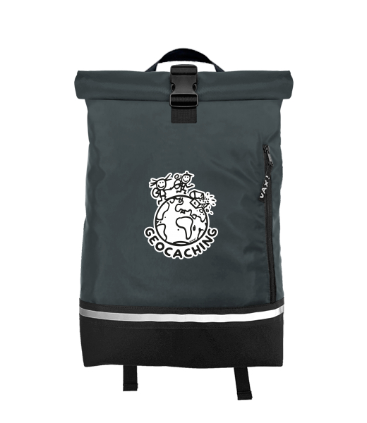 Original backpack ROLL-TOP SMALL with design 1215 GEOCACHING in color GREY INK