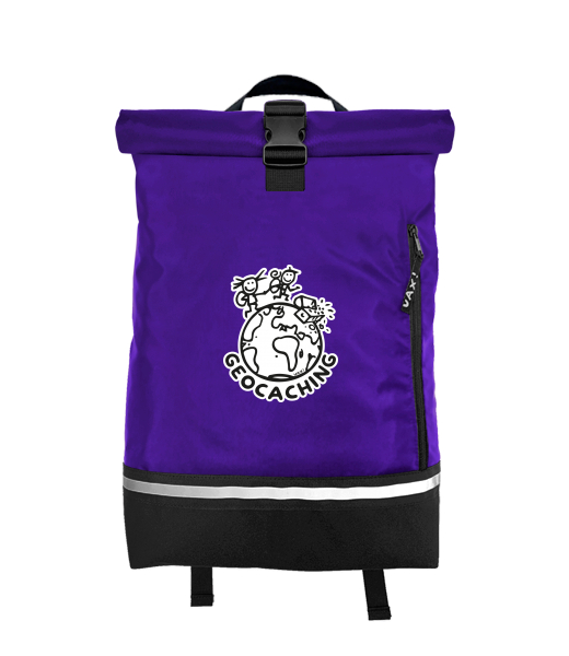 Original backpack ROLL-TOP SMALL with design 1215 GEOCACHING in color VIOLET