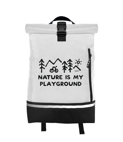 Original backpack ROLL-TOP SMALL with design 1223 NATURE IS MY PLAYGROUND in color WHITE