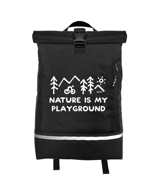 Original backpack ROLL-TOP SMALL with design 1223 NATURE IS MY PLAYGROUND in color BLACK