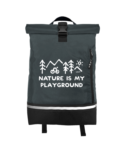 Original backpack ROLL-TOP SMALL with design 1223 NATURE IS MY PLAYGROUND in color GREY INK