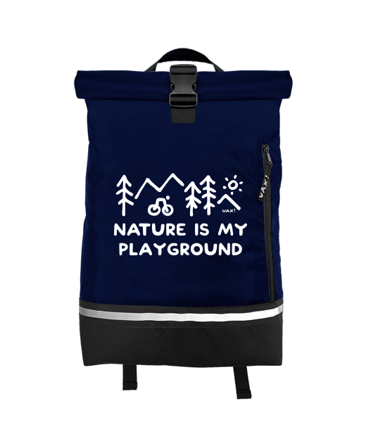 Original backpack ROLL-TOP SMALL with design 1223 NATURE IS MY PLAYGROUND in color MIDNIGHT BLUE