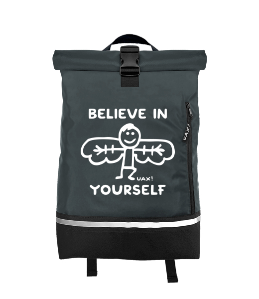 We make sustainable UAX clothing! - hand sewn in the Czech Republic uaxAccessories uaxAll productsPouches and backpacksBACKPACK ROLL-TOP SMALLdesign 1228 - BELIEVE IN YOURSELFGREY INK