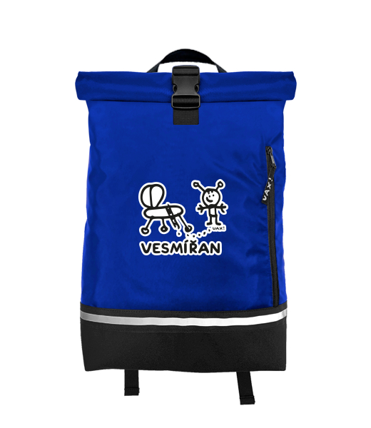 Original backpack ROLL-TOP SMALL with design 1232 VESMÍŘAN in color CLASSIC BLUE