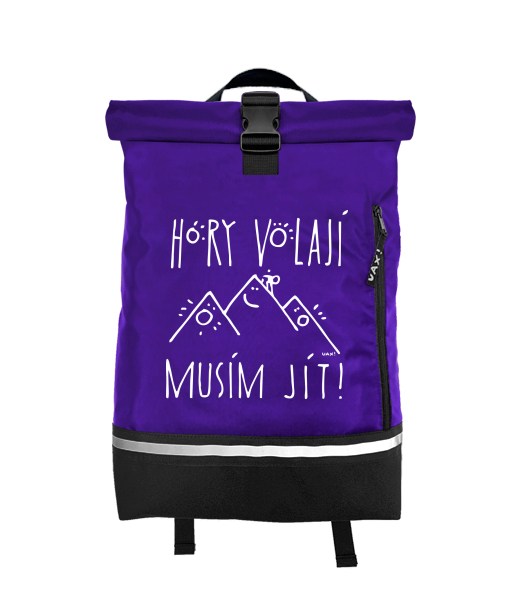 Original backpack ROLL-TOP SMALL with design 1233 HORY VOLAJÍ MUSÍM JÍT in color VIOLET