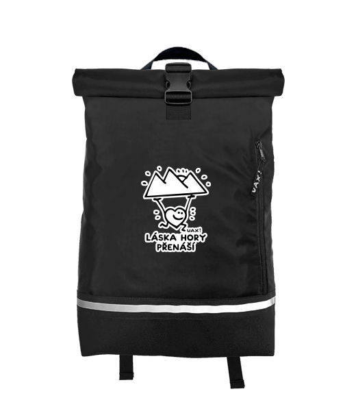 Original backpack ROLL-TOP SMALL with design 1264 LÁSKA HORY PŘENÁŠÍ in color BLACK