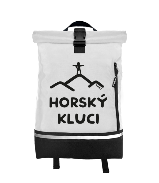 Original backpack ROLL-TOP SMALL with design 1275 HORSKÝ KLUCI in color WHITE