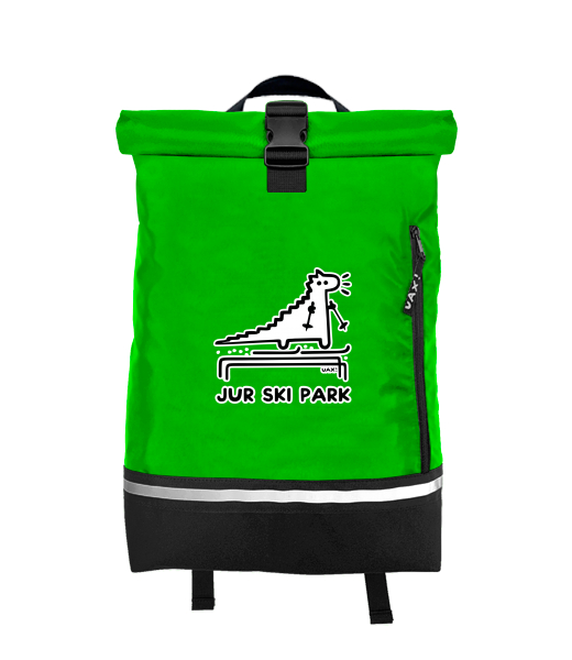 Original backpack ROLL-TOP SMALL with design 1277 JUR SKI PARK in color BRIGHT GREEN