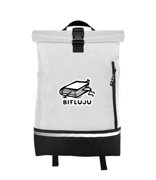 Original backpack ROLL-TOP SMALL with design 1281 BIFLUJU in color WHITE