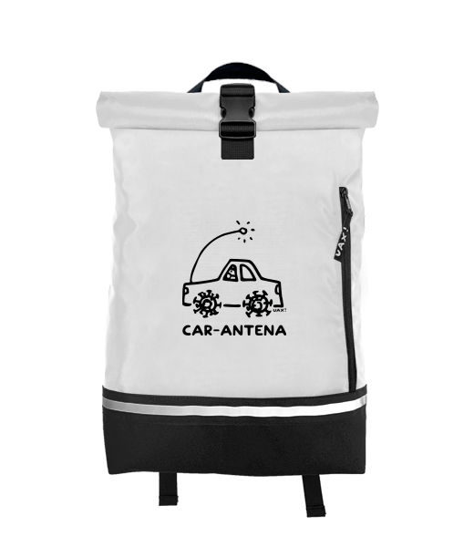 Original backpack ROLL-TOP SMALL with design 1284 CAR-ANTENA in color WHITE