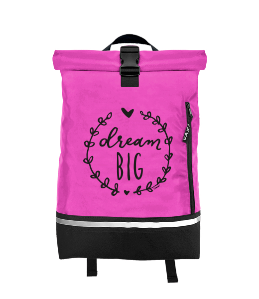 Original backpack ROLL-TOP SMALL with design 1286 DREAM BIG in color INDIAN LILA