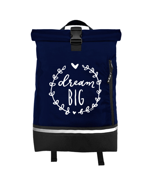 Original backpack ROLL-TOP SMALL with design 1286 DREAM BIG in color MIDNIGHT BLUE