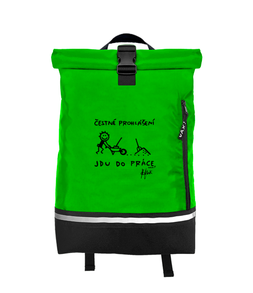 Original backpack ROLL-TOP SMALL with design 1304 ČESTNÉ PROHLÁŠENÍ JDU DO PRÁCE in color BRIGHT GREEN