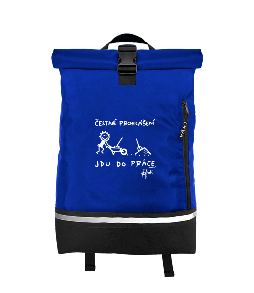 Original backpack ROLL-TOP SMALL with design 1304 ČESTNÉ PROHLÁŠENÍ JDU DO PRÁCE in color CLASSIC BLUE