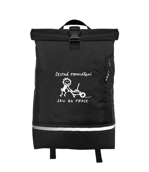 Original backpack ROLL-TOP SMALL with design 1305 ČESTNÉ PROHLÁŠENÍ JDU DO PRÁCE 2 in color BLACK