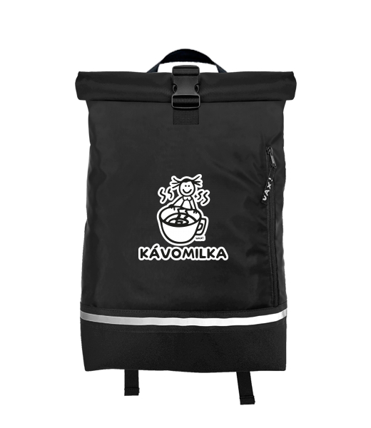 Original backpack ROLL-TOP SMALL with design 1311 KÁVOMILKA in color BLACK
