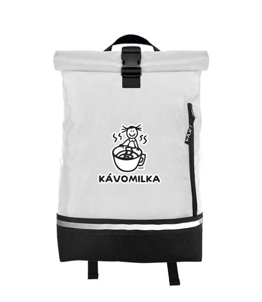 Original backpack ROLL-TOP SMALL with design 1311 KÁVOMILKA in color WHITE