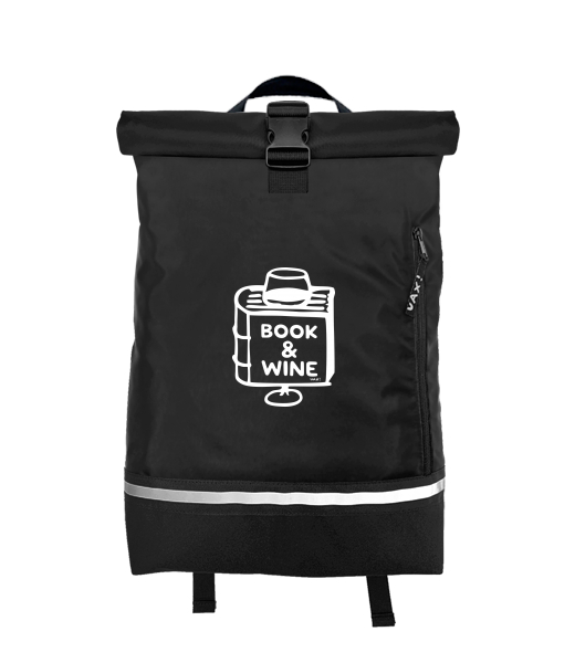 Original backpack ROLL-TOP SMALL with design 1322 BOOK AND WINE in color BLACK