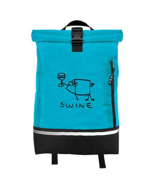 Original backpack ROLL-TOP SMALL with design 1323 SWINE in color BLUE ATOLL
