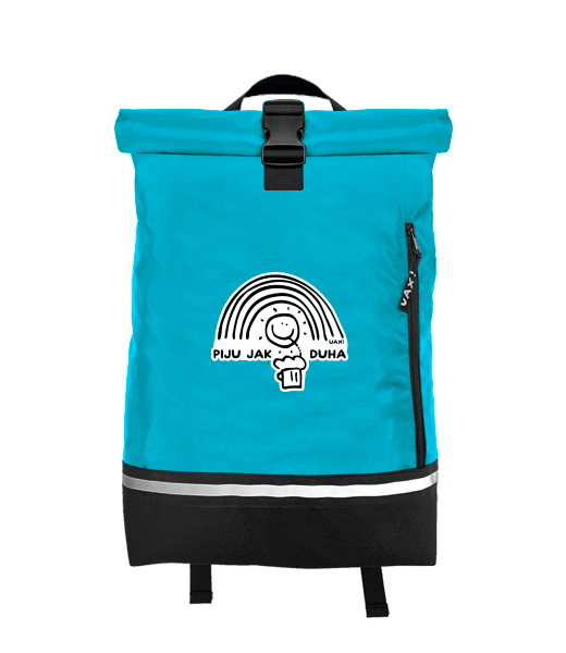 Original backpack ROLL-TOP SMALL with design 1324 PIJU JAK DUHA in color BLUE ATOLL