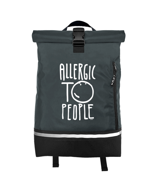 Original backpack ROLL-TOP SMALL with design 1329 ALLERGIC TO PEOPLE in color GREY INK